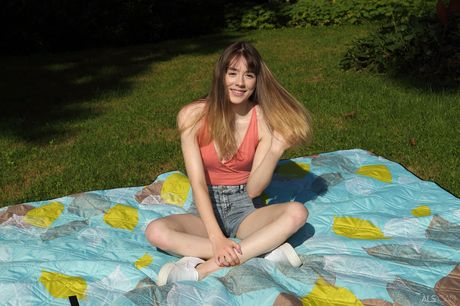 Flexible teen Michelle Anthony fists her pussy after getting naked in a yard