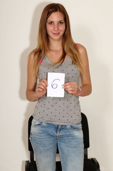 Hungarian teen Candy Sweet strips and poses naked in a backstage area