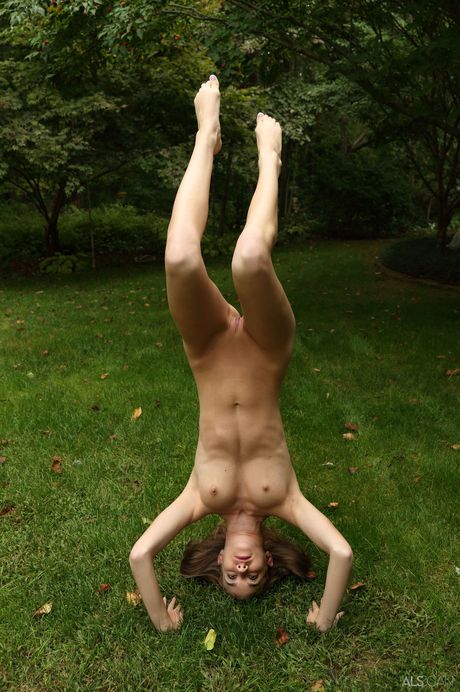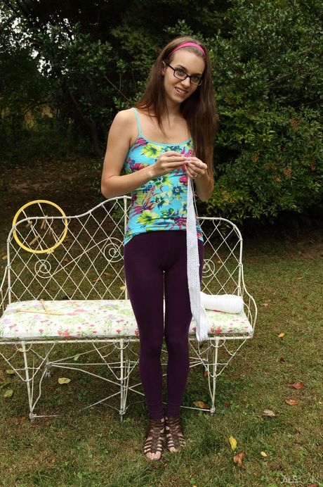 Nerdy teen Tali Dova gets naked in a backyard before toying her pussy