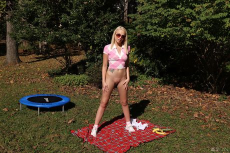 Petite teen Madison Summers gets naked before pissing on the lawn