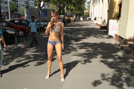 Skinny amateur Blue Angel flaunting her tiny tits and ass in public