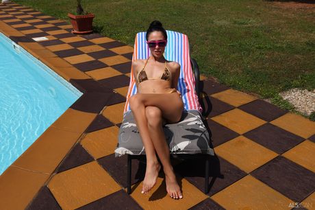 Skinny amateur teen babe Alyssa Bounty posing naked outdoor
