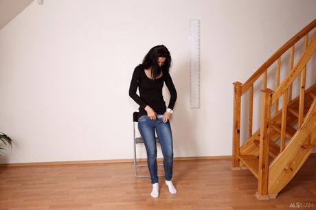 Skinny amateur teen babe with petite ass stripping and teasing her cunt