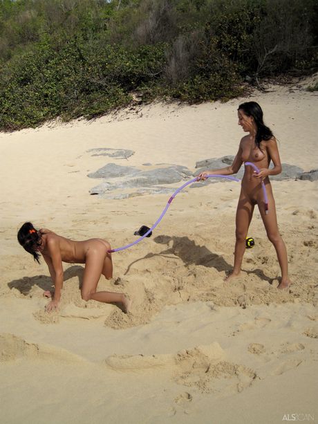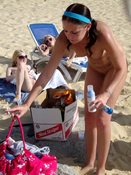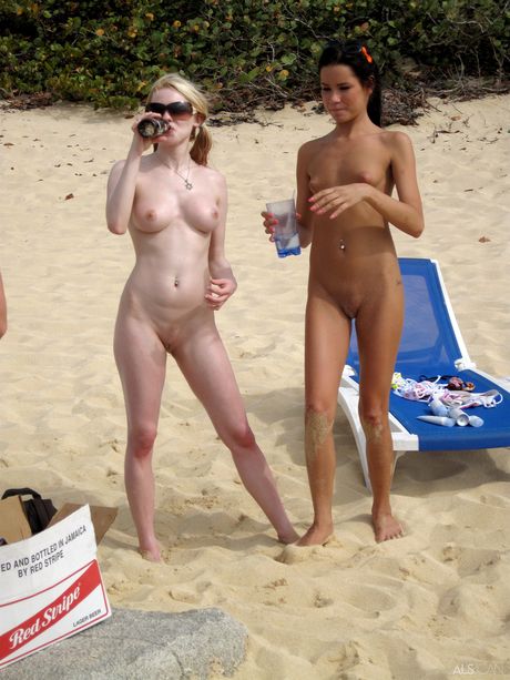 Skinny Hungarian teen Amia Moretti & her friends pose naked on the beach