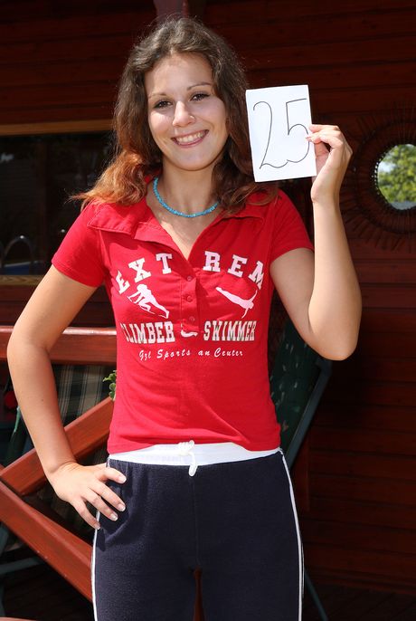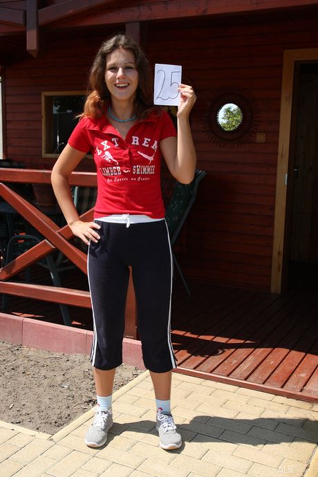 Skinny Hungarian teen Gloria strips and teases with her tiny tits