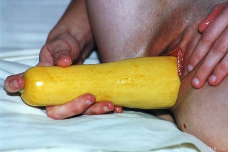 Slender teen Ashley strips and toys her shaved pussy in the kitchen