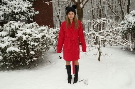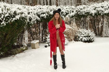 Slim teen Natasha White removes her clothes before masturbating with a cucumber