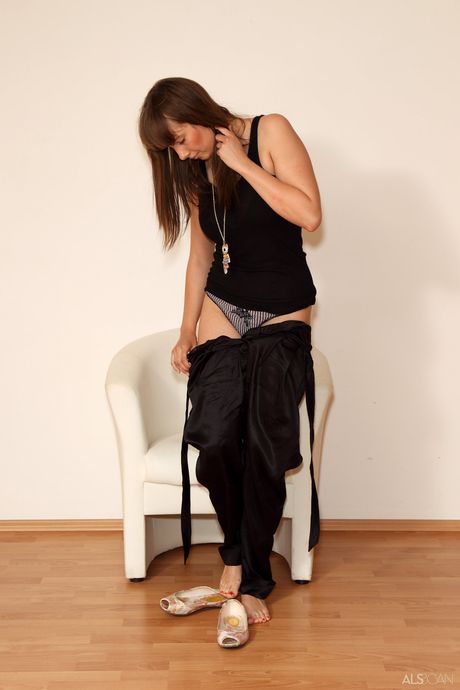 Svelte teen Conny strips and teases with her tiny tits and shaved pussy
