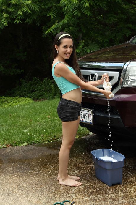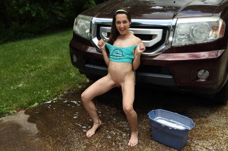 Svelte teen Freya Von Doom pisses on the sidewalk after getting naked