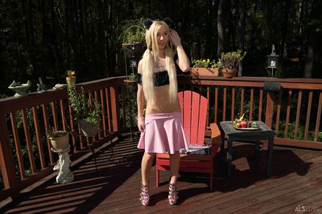 Svelte teen Kenzie Reeves gets naked in a yard and in a car