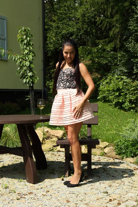 Teen lesbians Eveline Dellai & Lola fist pussies on a patio