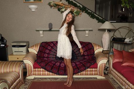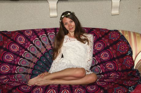 Thin teen Stefanie Moon fingers her pussy after getting naked