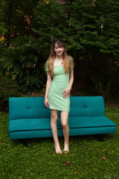 Young brunette Michelle Anthony fists her pussy while naked in a backyard