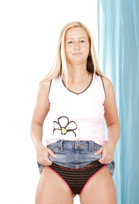 Amazing american blond Kristin in skirt denudes tiny tits and spreads her legs