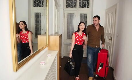 Amazing british dark-haired amateur Ava Dalush in hot lingerie sucking deep huge rod and takes a cumshot in mouth