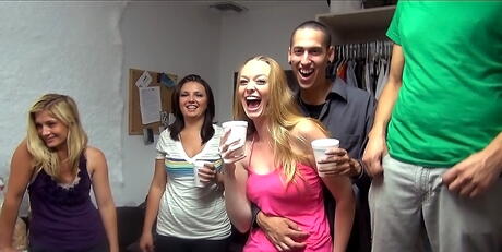 Amazing girls Jennifer,Elaina Raye and Enchantra robbing on cock at the dorm room party