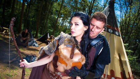 Amazing hungarian dark hair Aletta Ocean work on huge cock and takes a hot cum shot outdoor