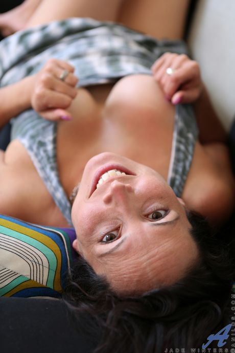 Amateur MILF Jade Winters shows her big tits and spreads her legs