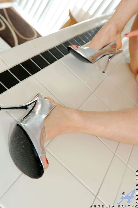 Blonde amateur Angella Faith takes off her bikini and masturbates