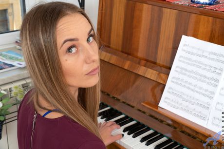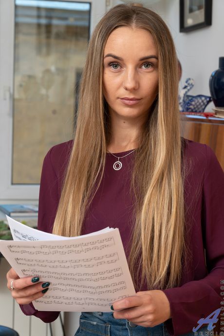 Blonde amateur Bekki takes off her dress and fingering her pussy