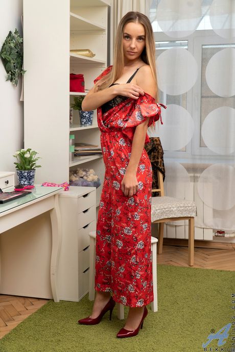 Blonde mature Bekki shows her shaved pussy and fingers it