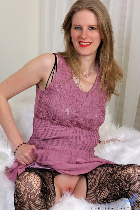 Blonde mature Chelsea Carter toys her shaved pussy in a solo