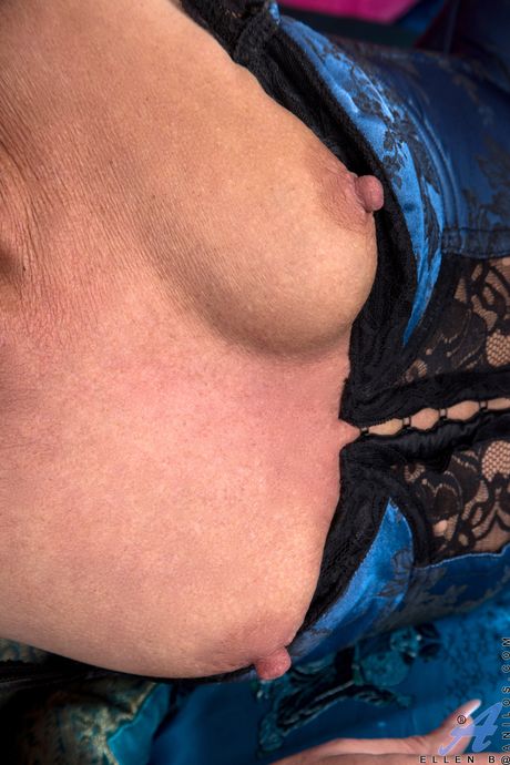 Mature blonde Ellen B. takes off her dress and lingerie to pose naked