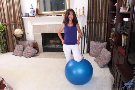 Mature granny Shelby Ray toys her hairy pussy and asshole with a dildo
