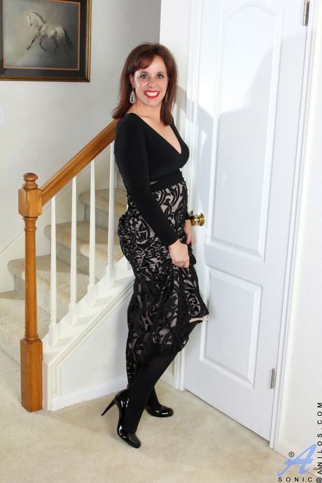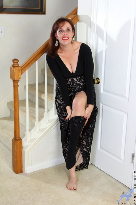 Mature redhead Sonic shows her big tits and shaved pussy in a solo