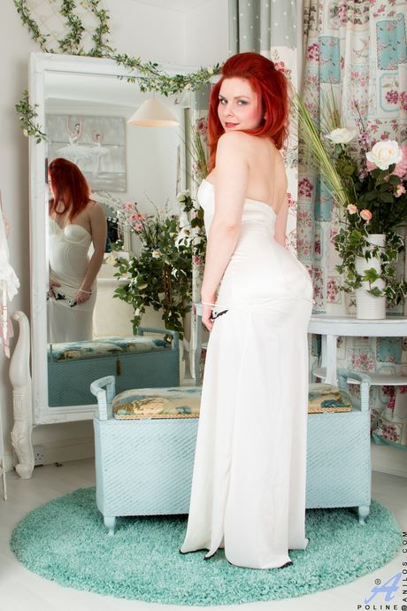 Redheaded MILF Poline shows her big ass and shaved pussy in a solo