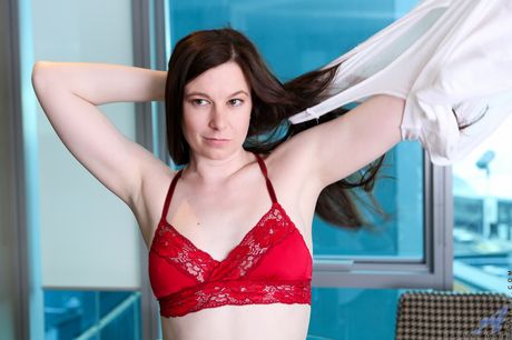 Sexy brunette Taliah Mae shows her pink pussy up close in a solo