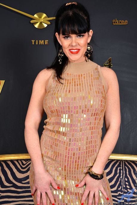Sexy mom Julia Dranac removes a black dress and lingerie to pose naked