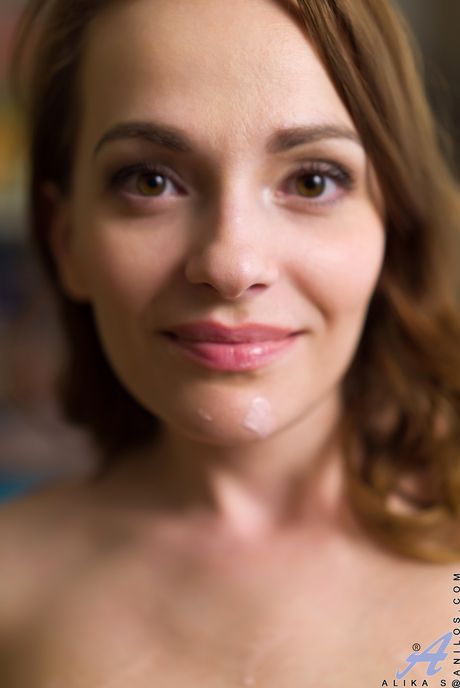 Sweet brunette Alika S shows her tasty ass and shaved pussy in a kitchen