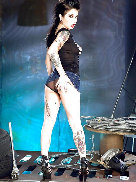 Appealing american brunette milf Joanna Angel in sexy shorts showing big hooters and ass