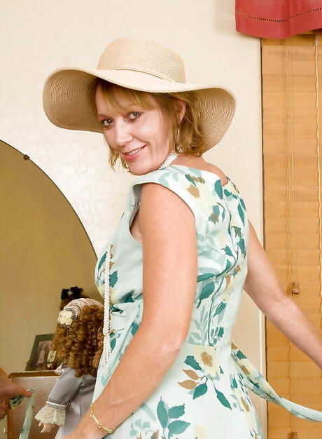 Appealing american mature Samantha Stone exposing big knockers and toying her cunt