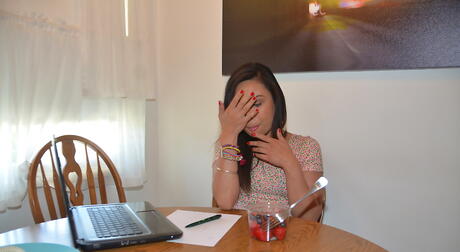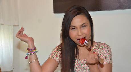 Appealing asian babe Alexa Bay exposes big boobies and pussy