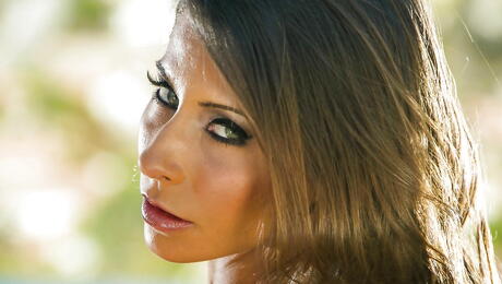 Attractive american babe Madison Ivy showing big knockers and sexy butt at pool