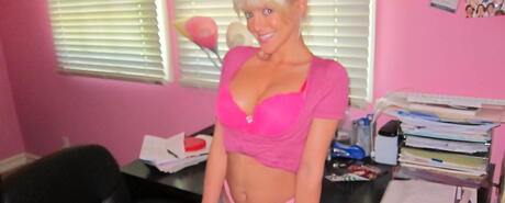 Attractive american blonde hottie London Reagan exhibiting big knockers and masturbating