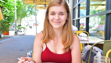 Attractive american blonde youthful Natalie Austin bares big titties and puts a toy in her twat outdoor