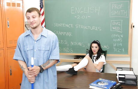 Attractive american dark-haired Natalie Heart in uniform drilled in her shaved pussy after wet blowjob