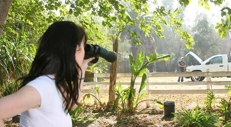 Attractive american milf Rayveness in fancy skirt drilled by huge rod after good suck outside