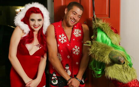 Attractive american redhead milf Amber Ivy in cosplay costume rammed by big cock after good cock suck