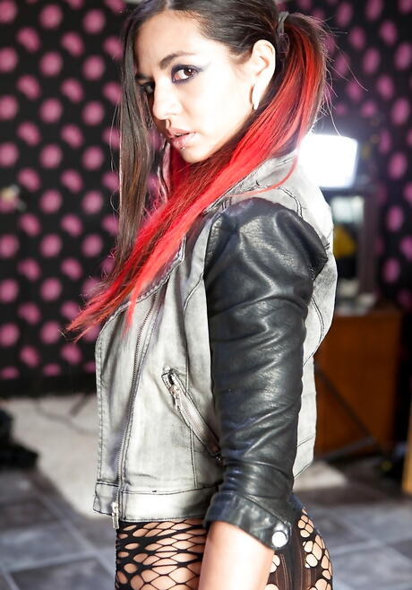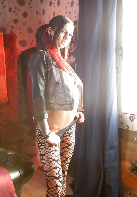 Attractive babe Holly D posing in fancy pantyhose on camera