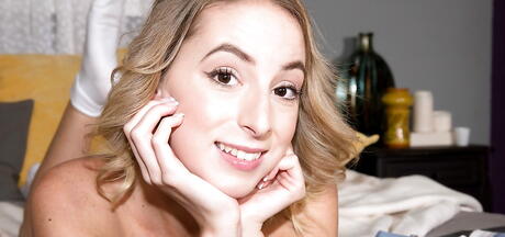 Attractive babe Narlie in sexy shorts exposes big tits and spreads her legs