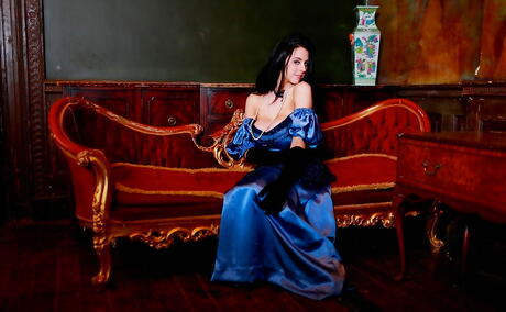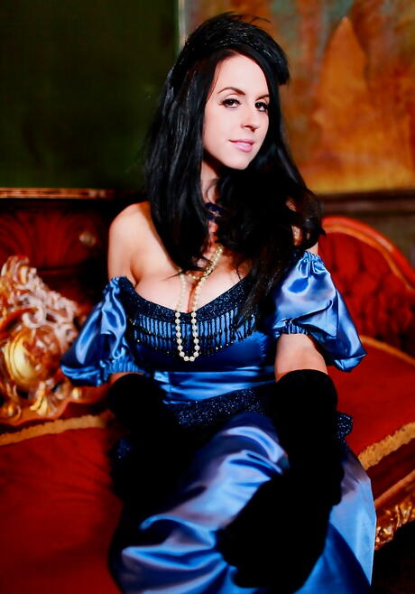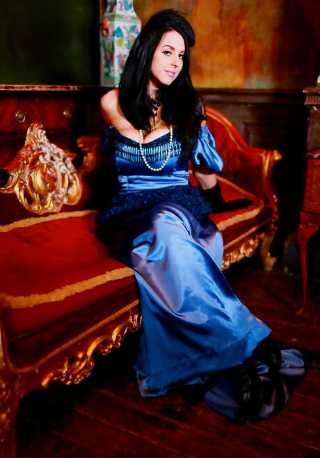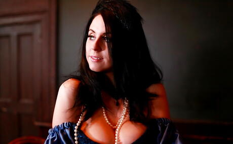 Attractive british dark hair milf Louise Jenson in stockings exhibiting big boobies and shaved pussy