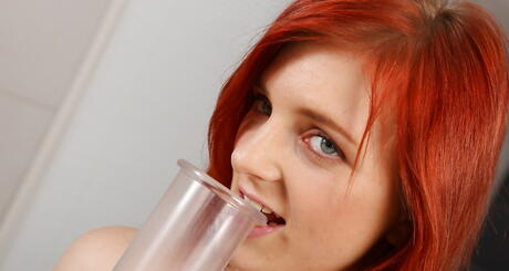 Attractive czech red-haired Vanessa Shelby in undies toying her snatch