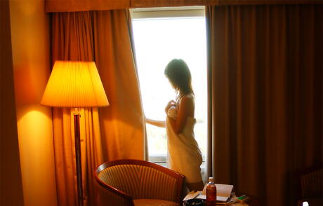 Attractive japanese Mai exposing tiny tits and hot ass in the bathroom
