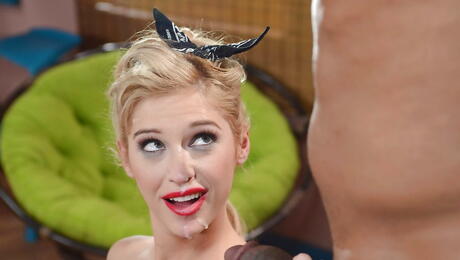 Charming american bombshell Kleio Valentien sucking deep big black rod and enjoys a cumshot on face