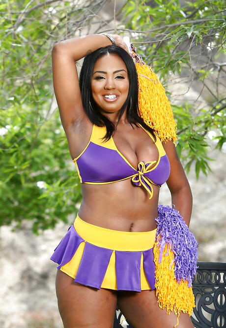 Charming american cutie Layton Benton in uniform showing big titties and spreading her legs outside