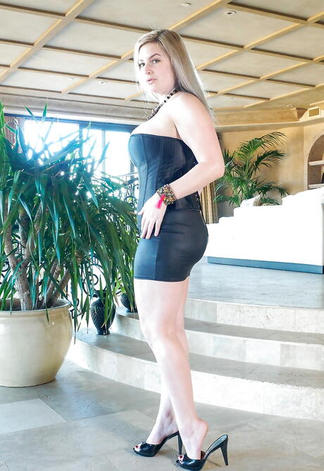 Charming blonde babe Danielle Delaunay in sexy skirt showing big titties and masturbating